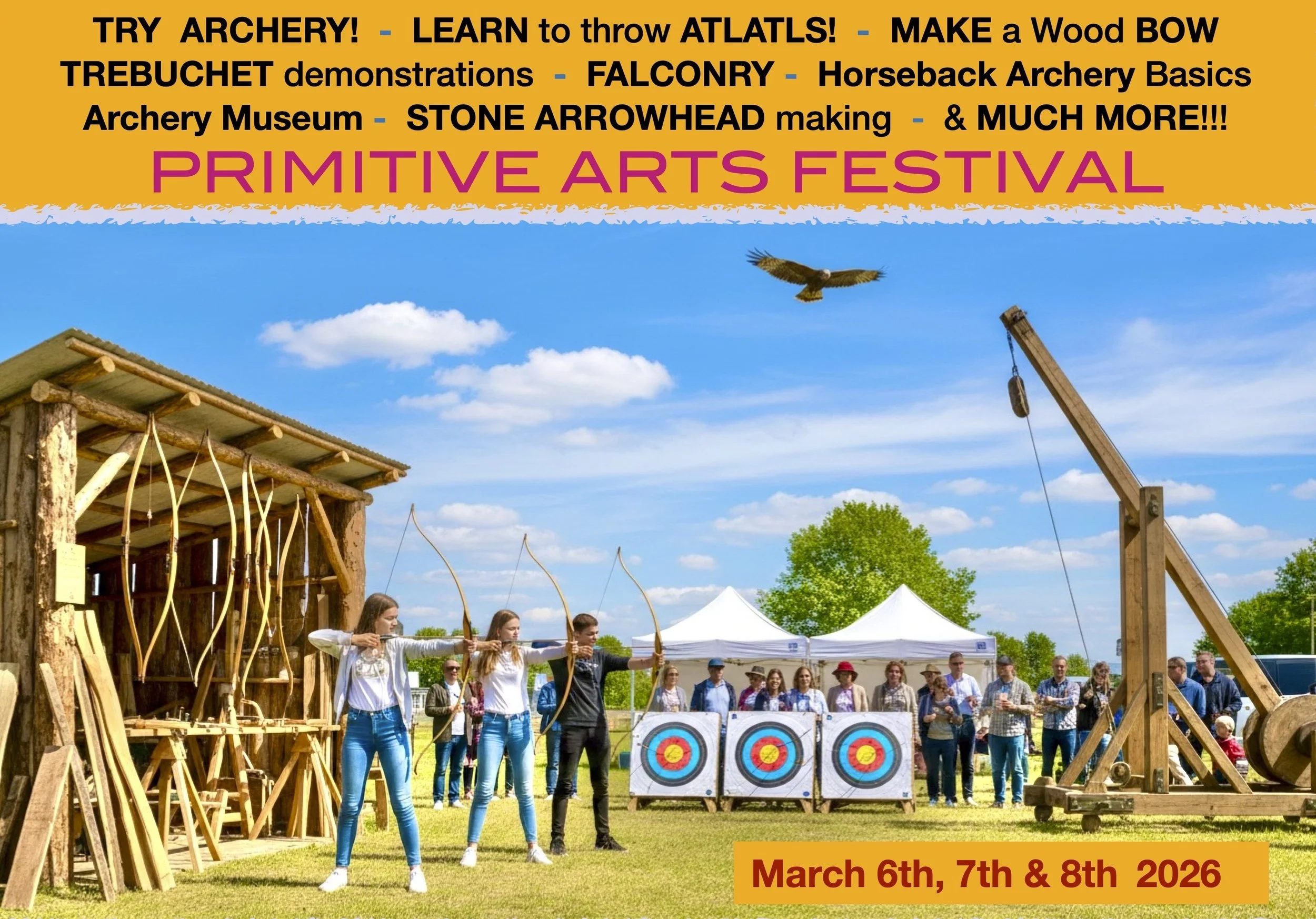 For the Public: At our Bombardier Traditional (March 6th and 8th 2026) you can TRY ARCHERY, LEARN to throw ATLATLS, MAKE a wood BOW, TREBUCHET demos, FACONRY Demos, STONE ARROWHEAD making & MUCH MORE